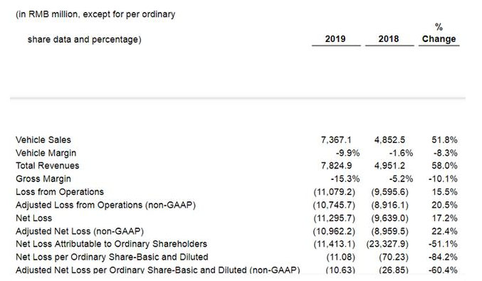 第一,1億元的虧損也只占蔚來所有虧損中的一小部分。根據(jù)2019年的財務(wù)報告,蔚來去年的總虧損達到110.792億元。7000萬元只占其中的0.63%,不足1%。