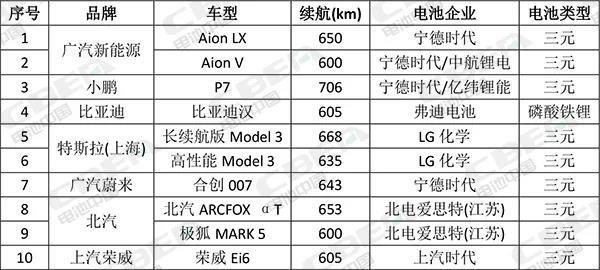 國內(nèi)續(xù)航600km(含)以上車型及配套電池生產(chǎn)企業(yè)統(tǒng)計