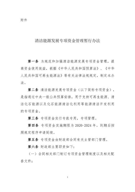 清潔能源發(fā)展專項資金(以下簡稱專項資金),是指通過中央一般公共預算安排,用于支持可再生能源、清潔化石能源以及化石能源清潔化利用等能源清潔開發(fā)利用的專項資金。專項資金實行??顚S?,專項管理。