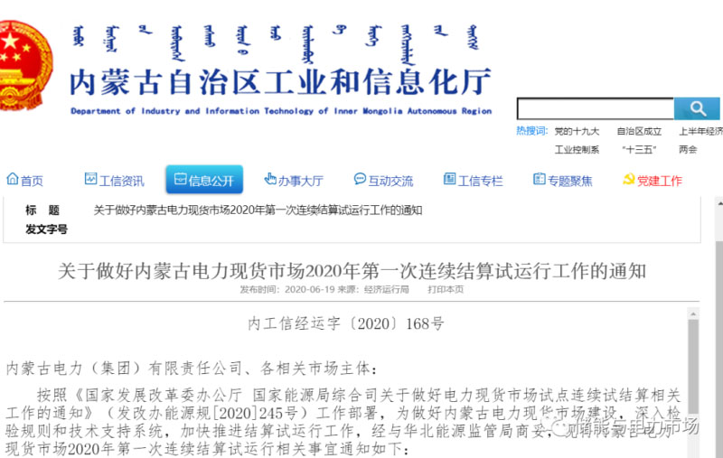 6月19日,內蒙古工信廳發(fā)布了《關于做好內蒙古電力現(xiàn)貨市場2020年第一次連續(xù)結算試運行工作的通知》,計劃:
