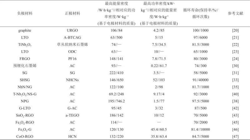 表1 不同石墨烯基鋰離子電容器的電化學(xué)性能