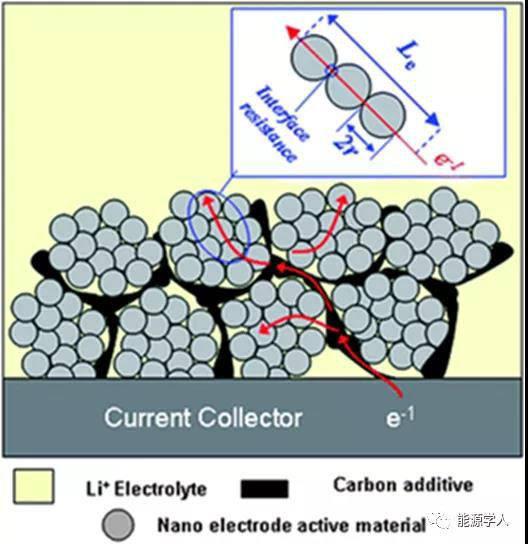 圖7.顯示電子傳輸長度(Le)的納米顆?;姌O示意圖