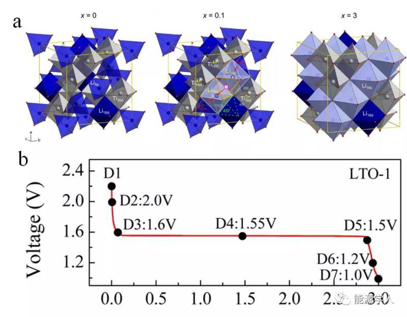 圖1.(a)鋰插入過程中的結(jié)構(gòu)變化,(b)Li4Ti5O12典型的放電曲線。