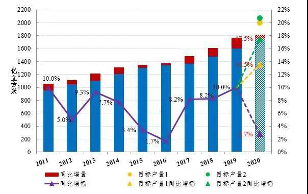 考慮到主要油氣生產(chǎn)企業(yè)加大天然氣發(fā)展的戰(zhàn)略取向,加上目前石油生產(chǎn)虧損而天然氣生產(chǎn)盈利的現(xiàn)實(shí),以及行業(yè)生產(chǎn)運(yùn)行特點(diǎn)和國家增儲上產(chǎn)政策導(dǎo)向,預(yù)計今年剩余時間天然氣產(chǎn)量仍將維持較快增長,若年增長率按10%估算,2020年產(chǎn)量可達(dá)1938億立方米,若按8%估算,產(chǎn)量可達(dá)1902億立方米,若按5%估算,產(chǎn)量也會達(dá)到1850億立方米,均高于《意見》設(shè)定的目標(biāo)。