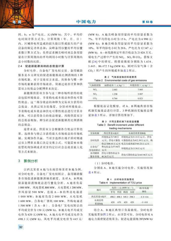 為了促進新能源高比例消納,針對自備電廠發(fā)電權(quán)交易、備用輔助服務(wù)交易和分時電價交易三種市場機制,構(gòu)建市場機制對新能源消納貢獻度模型;基于促進新能源消納的市場機制,分析其環(huán)境效益、節(jié)省購電成本效益和供電可靠性提升效益,構(gòu)建量化模型對市場機制效益進行量化。通過選取西北某地與東南沿海某地兩地的數(shù)據(jù)進行效益測算,結(jié)果證明,有效的市場機制可促進高比例新能源的消納,同時效益可觀。