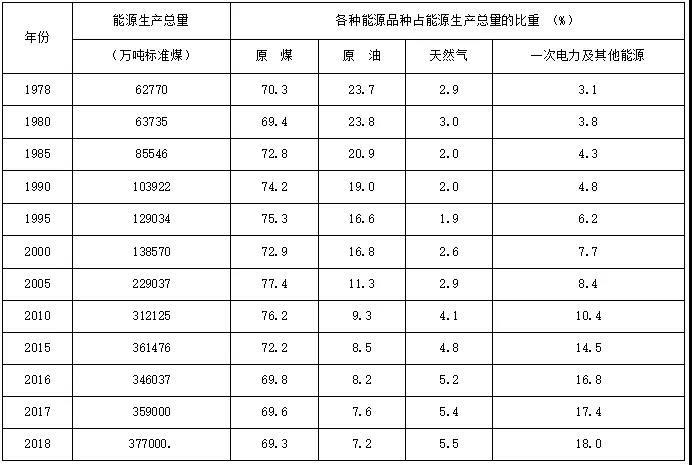 1978年,我國(guó)能源生產(chǎn)總量為6.3億噸標(biāo)準(zhǔn)煤,2018年一次能源產(chǎn)量達(dá)到37.7億噸標(biāo)準(zhǔn)煤,比1978年增長(zhǎng)了5.0倍,年均增長(zhǎng)4.58%,有力地支撐了經(jīng)濟(jì)建設(shè)的快速發(fā)展。