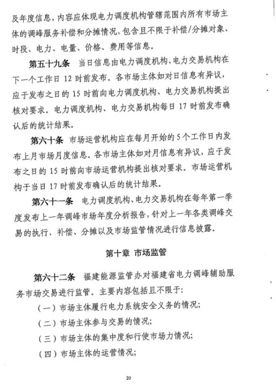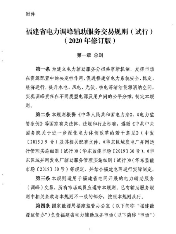 中國儲能網訊:6月30日,國家能源局福建能監(jiān)辦正式印發(fā)《福建省電力調峰輔助服務交易規(guī)則(試行)(2020年修訂版)》,在電儲能參與調峰輔助服務方面,參與調峰交易的儲能規(guī)模不小于10MW/40MWh。文件鼓勵發(fā)電企業(yè)、售電企業(yè)、電力用戶、電儲能企業(yè)等投資建設電儲能設施。