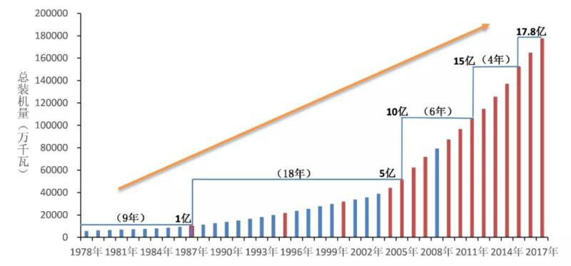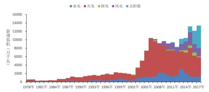 圖3 1978-2017年分類型新增裝機增長特點