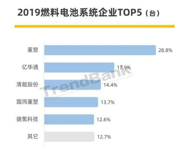 如今,在國家新政發(fā)布后,各地方政府積極響應(yīng),并出臺(tái)一系列規(guī)劃和鼓勵(lì)政策,燃料電池汽車行業(yè)蒸蒸日上,系統(tǒng)配套企業(yè)也成為了這次補(bǔ)貼新政的鼓勵(lì)和支持對(duì)象,從2019年度系統(tǒng)企業(yè)市占率可以看出,前五企業(yè)基本占據(jù)市場(chǎng)80%份額,市場(chǎng)集中度非常高,一定意義上來說不利于市場(chǎng)的發(fā)展。