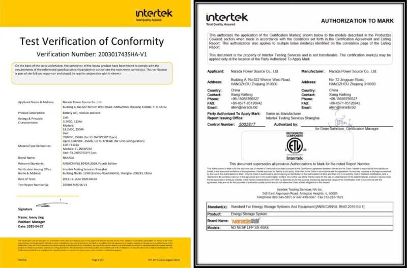 為了配合項目的推進,南都電源 MW 級集裝箱式鋰電儲能系統(tǒng)申請并獲得 UL9540 和 UL9540A 認證,標志著南都儲能系統(tǒng)獲得全球儲能領(lǐng)先標準安全認證認可,打通了北美儲能市場的綠色通道。