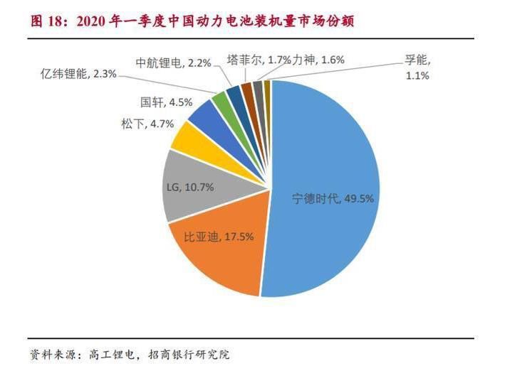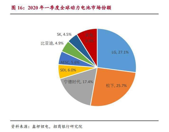 LG 占比有望繼續(xù)提升。2020 年 Q1,LG、松下、寧德時(shí)代、比亞迪全球 市場占有率分別為 27.1%、25.7%、17.4%、4.9%。LG 占有率同比增速達(dá) 153.3%,增長迅猛;松下維持其一貫的穩(wěn)健風(fēng)格,排名仍為第二,市占有率同 比小幅增長;國內(nèi)企業(yè)寧德時(shí)代、比亞迪分別位列第三、第六,下滑顯著。這 主要是由于一季度受疫情影響,國內(nèi)的新能源汽車市場跌入谷底。而歐美疫情 爆發(fā)較晚,一季度受影響較小,新能源汽車市場還出現(xiàn)一定程度的增長。
