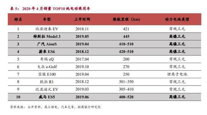2020 年 4 月純電動乘用車銷量前十的車型中有 40% 搭載高鎳三元,占比較 高,均為中高端長續(xù)航版?;谌矫嬉蛩兀海?)成本:高鎳三元中鈷含量 較低,隨著上游產(chǎn)能提升和技術(shù)進(jìn)步,材料的價(jià)格有望進(jìn)一步下降;(2)安 全:通過材料改性、電池結(jié)構(gòu)優(yōu)化等策略,業(yè)內(nèi)已解決中鎳三元的針刺安全性 問題,隨著技術(shù)迭代,高鎳三元的安全劣勢有望得到改善;(3)下游需求: 明星車型 Model 3 長續(xù)航版采用高鎳三元,各車企長續(xù)航版車型為體現(xiàn)性能差 異,最佳的方式是采用高鎳三元電池,預(yù)計(jì)未來兩年高鎳三元仍是動力電池的 發(fā)展方向。
