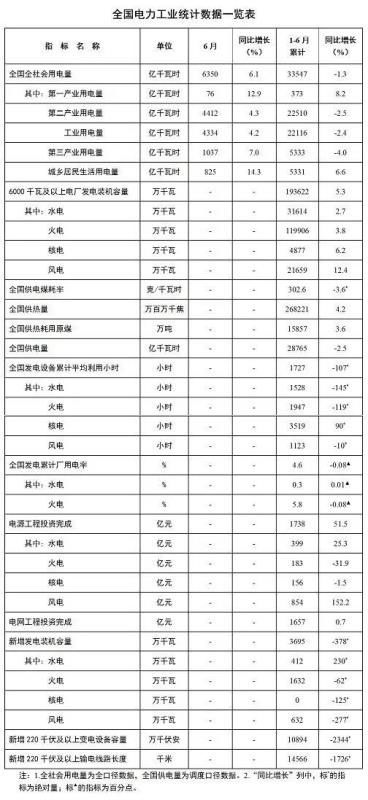 7月16日,國(guó)家能源局發(fā)布1-6月份全國(guó)電力工業(yè)統(tǒng)計(jì)數(shù)據(jù)。