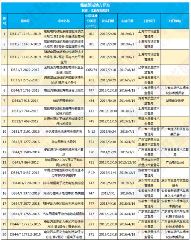 國家標準化管理委員會印發(fā)的《2020年國家標準立項指南》也指出要推動新能源發(fā)電并網(wǎng)、電力儲能等重要標準研制。2020年7月17日,國家能源局正式開啟了儲能試點示范項目申報,其示范目的也是要通過分析總結(jié)示范項目成功經(jīng)驗和存在問題,促進建立健全相關(guān)技術(shù)標準與工程規(guī)范。