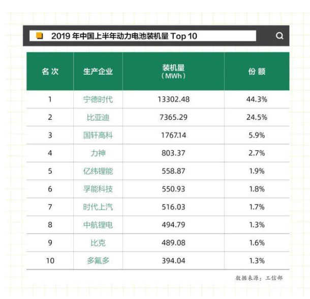 各動力電池企業(yè)在中國新能源汽車市場今年上半年裝機(jī)量的基本情況如下: