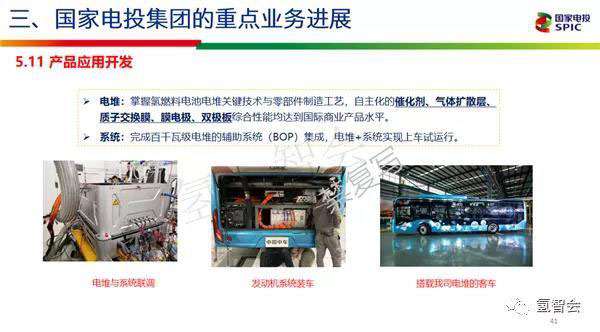 國家電投整個(gè)氫能產(chǎn)業(yè)布局是兩條線,一條是能源線,也就是說利用我們公司豐富的可再生能源制氫,然后建立氫的網(wǎng)絡(luò),這部分可能將來需要和張總這邊,中石油、中石化這些都要建立長期的戰(zhàn)略合作;第二是產(chǎn)品線,因?yàn)閯偛盼艺f了,如果說我們最后的應(yīng)用端打不通的話,我們前面的能源線就不通了,所以我們認(rèn)為我們是通過技術(shù)研發(fā)進(jìn)行燃料電池整個(gè)全產(chǎn)業(yè)鏈,從材料到產(chǎn)品整個(gè)研發(fā),最后進(jìn)行一些示范應(yīng)用,比如說和汽車企業(yè)、儲能企業(yè)還有其他企業(yè)進(jìn)行合作,因?yàn)槲覀兪悄茉囱肫?,我們不會造車,但是我們會和一些汽車企業(yè)合作。