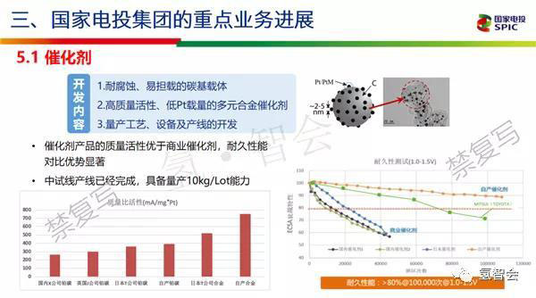 我們主要工作在兩方面做的,我們可以做到整個(gè)催化劑鉑金顆粒在2.0-2.1,而且基本上在這個(gè)里面。第二是耐久性主要是通過載體的碳也好或者經(jīng)過改性以后,耐久性有了很大的提高,我們目前中試線已經(jīng)完成,具備了每批大概10公斤左右的生產(chǎn)能力。