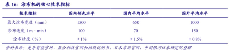 目前,國產(chǎn)廠商在高端涂布設(shè)備領(lǐng)域離日韓企業(yè)還有差距,尚未完成進口替代。