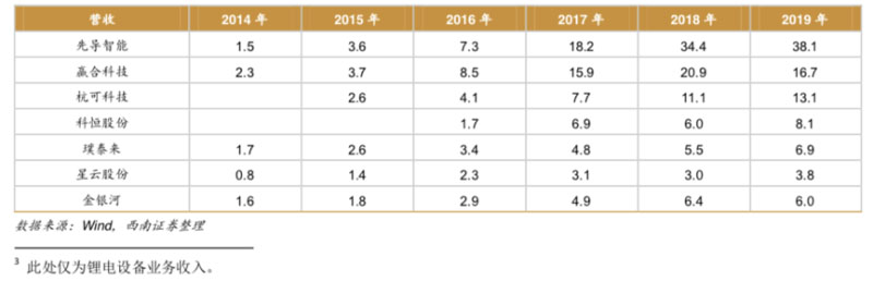 注:科恒股份和璞泰來僅限鋰電設(shè)備業(yè)務(wù),數(shù)據(jù)來源:西南證券