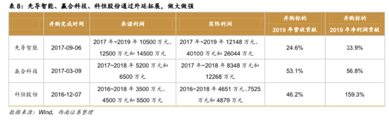 在合并了被收購公司的財務(wù)報表之后,2017年,先導(dǎo)智能的營收是上一年的2.49倍,利潤是上一年的1.86倍;贏合科技的營收是上一年的1.87倍,利潤是上一年的1.83倍。