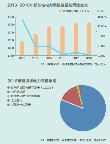 近年來(lái),新加坡電力裝機(jī)增速持續(xù)放緩。2018年,新加坡電力累計(jì)裝機(jī)容量較2013年增長(zhǎng)9.78%,2013~2018年電力累計(jì)裝機(jī)容量年復(fù)合增長(zhǎng)率為1.88%。