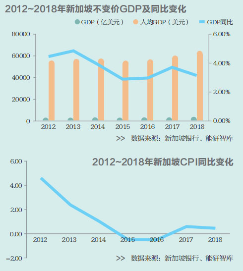 新加坡是東盟成員國(guó)中唯一的發(fā)達(dá)經(jīng)濟(jì)體。2012~2018年,新加坡經(jīng)濟(jì)保持了較為穩(wěn)定的增長(zhǎng)態(tài)勢(shì),GDP增速基本維持在3~4%。