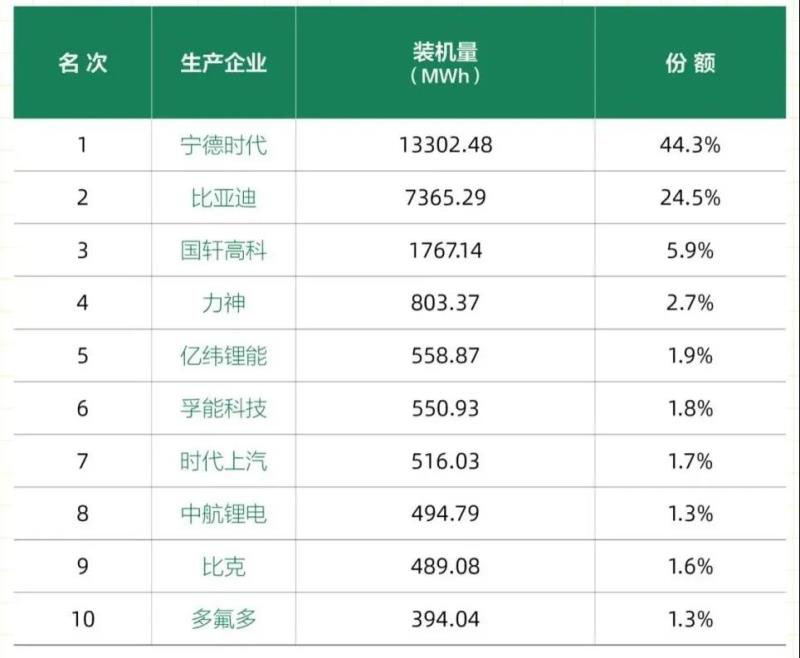 2020上半年動(dòng)力電池裝機(jī)量TOP10
