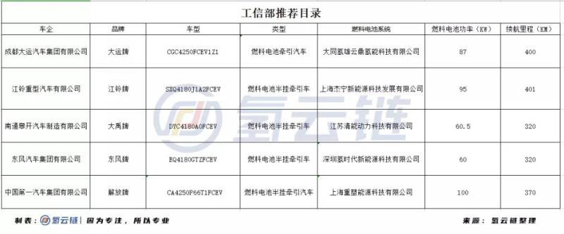 表3 工信部推薦目錄燃料電池重卡車型