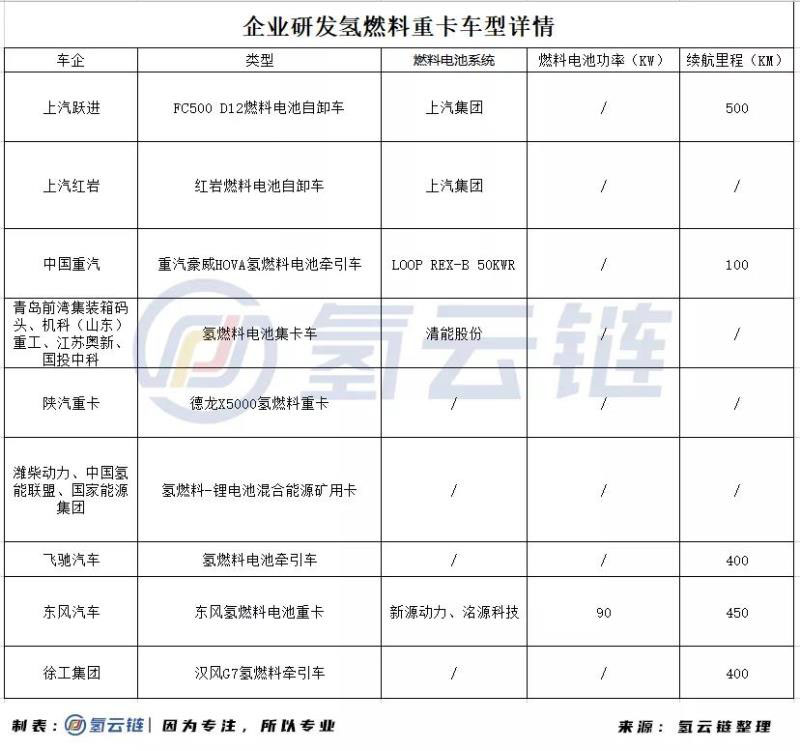 ●2、各車企燃料電池重卡車型●