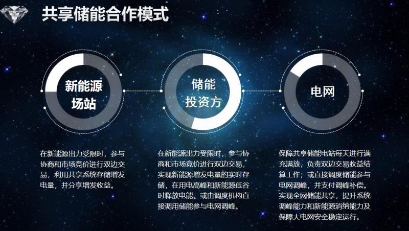 下面看一下電網(wǎng)側(cè)共享儲能的商業(yè)模式,因為我們之前做過這樣的案例,主要體系是由三方參與進(jìn)去的,包括電網(wǎng)、儲能投資方和新能源儲能電站。電網(wǎng)在當(dāng)中主要起三個作用,第一個作用是保證儲能電站是滿充滿放的,第二個是要把電費在新能源場站和投資方進(jìn)行一個配置,第三個是參與電網(wǎng)側(cè)的輔助服務(wù)。它的收益模式主要有四層,我們從下往上看,先看左下角這一塊,這是它的托底收益,我們之前是在青海做的,西北能監(jiān)局有出過一個政策,0.7元輔助服務(wù)的托底收益。再看未來,未來肯定會對新能源管控越來越嚴(yán)格的,如果說棄風(fēng)棄光超額的話是會收到罰款的。