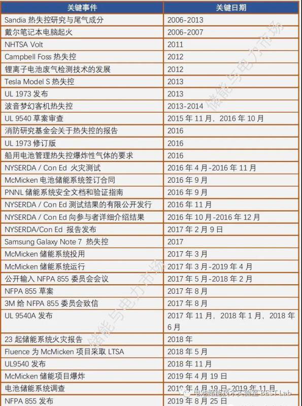研究報告還總結(jié)了截至McMicken事故發(fā)生時,在電池安全方面已經(jīng)進行的相關(guān)研究,發(fā)布的標準以及法規(guī),如下表所示。