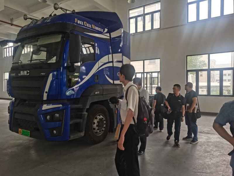 交流會(huì)上,清能股份銷售總監(jiān)錢繼冉代表公司為大家介紹了水冷和空冷系列產(chǎn)品,并帶領(lǐng)大家參觀了生產(chǎn)車間,以及“江鈴42噸燃料電池半掛牽引車”。