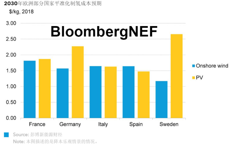 歐盟委員會(huì)于2020年7月8日發(fā)布了新氫能戰(zhàn)略,目標(biāo)是到2030年將歐盟國(guó)家的綠氫制備能力提高至40GW,并快速擴(kuò)張電解槽產(chǎn)能。計(jì)劃如能實(shí)現(xiàn),氫能產(chǎn)業(yè)規(guī)?;欣陂_啟全球氫能經(jīng)濟(jì)新時(shí)代;到2030年,歐洲綠氫制備成本有望降六成,降至1.5美元/千克。