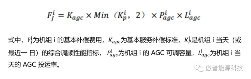 2020年6月30日,江蘇能源監(jiān)管辦會同江蘇省發(fā)展改革委印發(fā)《江蘇電力輔助服務(調頻)市場交易規(guī)則(試行)》,并于7月1日正式啟動電力輔助服務調頻市場試運行。根據文件,江蘇電力調頻輔助服務市場補償費用分為基本補償和調用補償兩類?;狙a償標準Kagc為2元/MW;調用補償:依據調頻里程、調頻性能及里程單價計算,調頻里程申報價格的下限0.1元/兆瓦,上限1.2元/MW,補償價格為全國最低。具體計算如下: