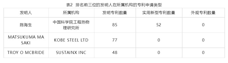 基于統(tǒng)計(jì)出的壓縮空氣儲(chǔ)能領(lǐng)域排名前三位的發(fā)明人,對(duì)其在所屬機(jī)構(gòu)的專利申請(qǐng)類型及技術(shù)組成做介紹。