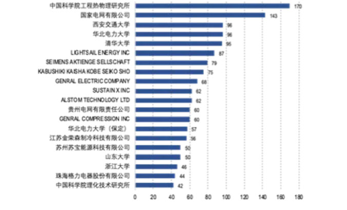 圖1 壓縮空氣儲(chǔ)能領(lǐng)域主要申請(qǐng)人(前20)