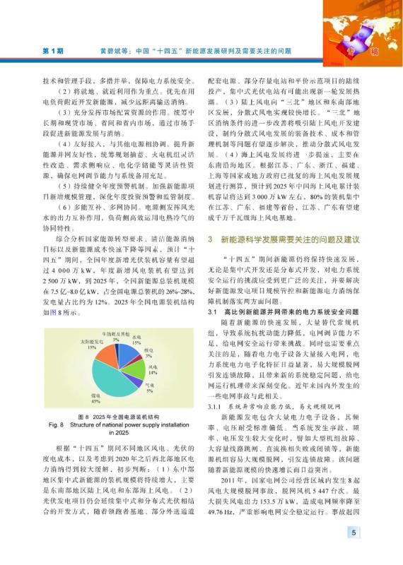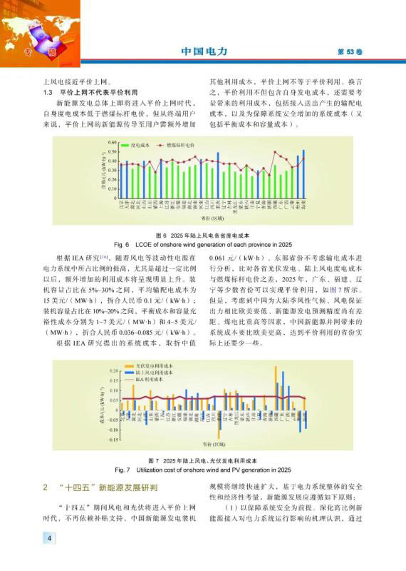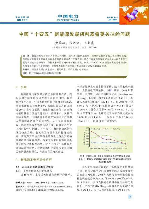 新能源發(fā)電即將步入平價上網(wǎng)時代,近中期仍將快速發(fā)展,在全網(wǎng)總裝機中的占比將繼續(xù)提高,其發(fā)展應(yīng)放到整個能源電力行業(yè)發(fā)展的框架內(nèi)進(jìn)行統(tǒng)籌考慮。結(jié)合中國新能源發(fā)電成本和接入電力系統(tǒng)引起的利用成本趨勢研判,分析未來平價上網(wǎng)和平價利用情況,研究“十四五”中國新能源發(fā)展總體情況以及需要關(guān)注的4個關(guān)鍵問題,提出實現(xiàn)高比例新能源與電力系統(tǒng)協(xié)調(diào)發(fā)展的政策建議。