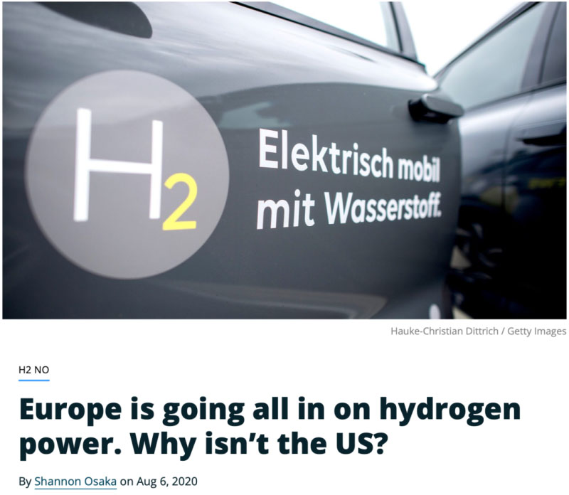 Grist.org網(wǎng)站發(fā)表署名Shannon Osaka 的文章,題目是:Europe is going all in on hydrogen power. Why isn’t the US?(歐洲正在全力發(fā)展氫能,為什么美國(guó)沒有這樣做?)