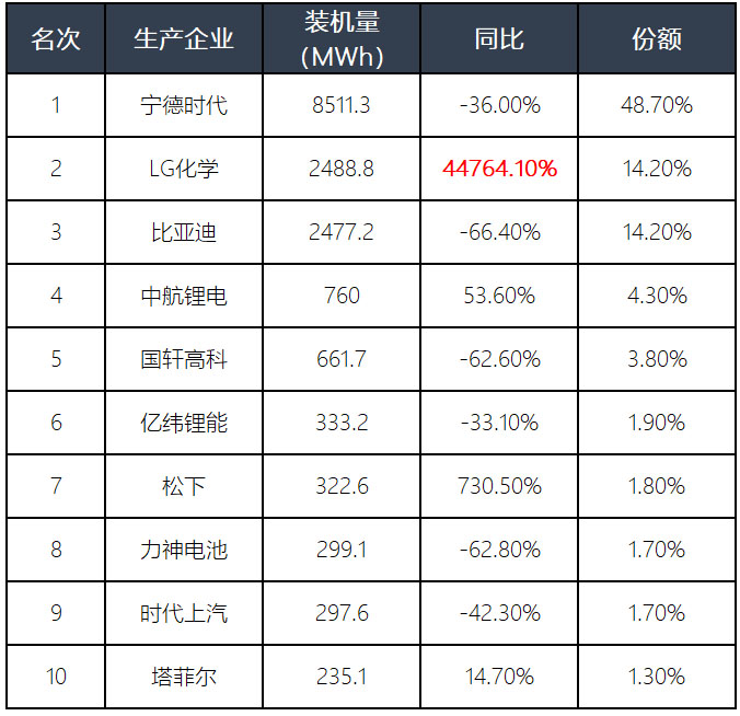 2020年中國上半年動力電池裝機量 Top10