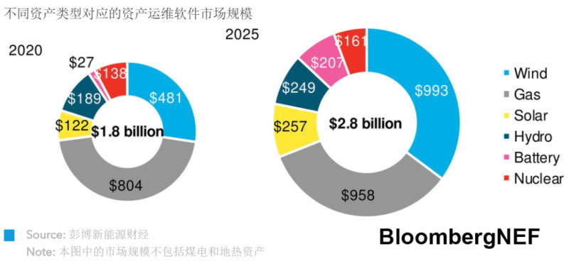 2020年,發(fā)電資產業(yè)主用于氣電、光伏、核電、水電和儲能資產的監(jiān)控、維護和優(yōu)化軟件的支出預計達18億美元。到2025年,實時監(jiān)控、先進運維分析軟件、無人機巡檢軟件以及增強現實軟件的市場總規(guī)模預計擴大至28億美元,增長60%。服務提供商、工業(yè)企業(yè)、初創(chuàng)企業(yè)以及云服務商之間合作與競爭并存。