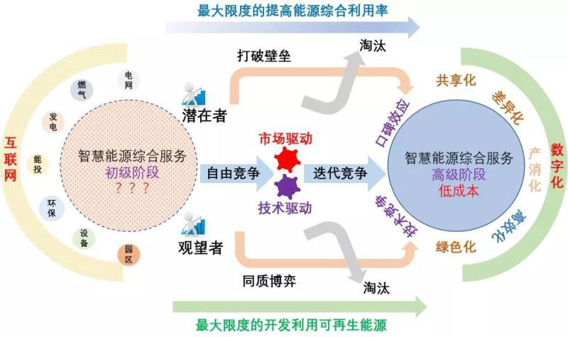 大體上,我國綜合能源服務(wù)還處于初級階段,多元主體合作與競爭的態(tài)勢明顯。一方面,在綜合能源服務(wù)領(lǐng)域,傳統(tǒng)物理機(jī)制的能源解決方案正在與數(shù)字驅(qū)動的能源解決方案展開融合,形式多樣化的大大小小的能源信息物理融合系統(tǒng)正在逐步形成;另一方面,一種面向多競爭主體的綜合能源服務(wù)共商、共建、共治、共贏的產(chǎn)業(yè)生態(tài)正在不斷迭代,形形色色、包羅萬象的綜合能源解決方案及內(nèi)容提供商正在孵化和角逐。