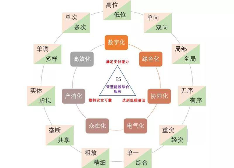 從多目標(biāo)優(yōu)化的角度來講,能源系統(tǒng)的基本目標(biāo)就是不斷逼近“滿足支付能力”、“維持安全可靠”、“達(dá)到低碳清潔”的能源不可能三角的目標(biāo)。“互聯(lián)網(wǎng)+智慧能源”(能源互聯(lián)網(wǎng))的發(fā)展,深化了本階段我國能源供應(yīng)與消費(fèi)的“能源三角目標(biāo)”,是助推能源“四個革命、一個合作”的重要理念和技術(shù)。如今,我國的能源轉(zhuǎn)型已呈現(xiàn)出電氣化、綠色化、共享化、高效化、產(chǎn)消化、數(shù)字化以及商品化的明顯特征,以滿足人類活動對能源的“社會性需求”和“心理性需求”。