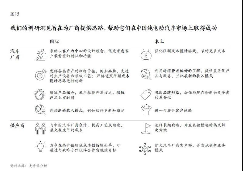 對(duì)于供應(yīng)商而言,合作關(guān)系至關(guān)重要。非中國供應(yīng)商可利用成熟的工程技術(shù),成為創(chuàng)新領(lǐng)頭羊。而中國供應(yīng)商或許可通過協(xié)助非中國汽車廠商在市場立足來拓寬自己的客戶群(圖13)。