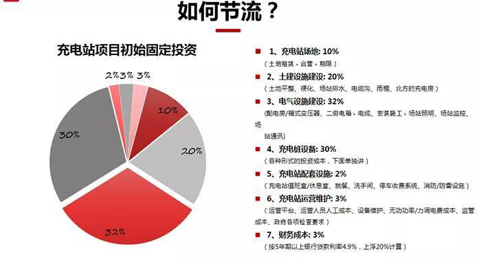 企業(yè)內(nèi)部的節(jié)流不可忽視,一定要重視財務(wù)管理。從充電站項目立項開始,要做好投資規(guī)劃,合理的分配投資比列。堅持初始固定投資控制原則,適度領(lǐng)先,周全布置,核心設(shè)備一定要使用品牌設(shè)備,拒絕組裝貨;堅持變動成本的控制原則,投資者要很清晰的知道哪些是隱形的變動成本;堅持重點選擇一個技術(shù)全面的整體解決方案合作伙伴,可以為投資者解決后顧之憂!