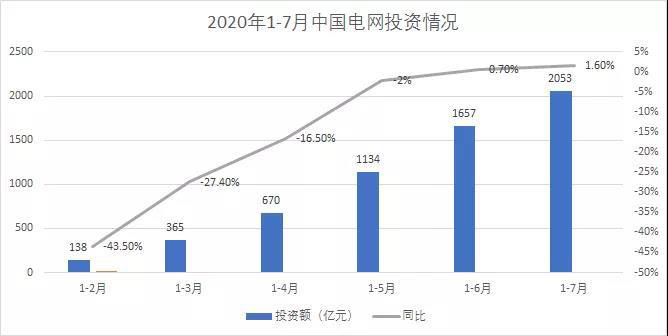 8月20日,國家能源局公布的數(shù)據(jù)顯示,1-7月份,全國電網(wǎng)工程完成投資2053億元,同比增長1.6%。
