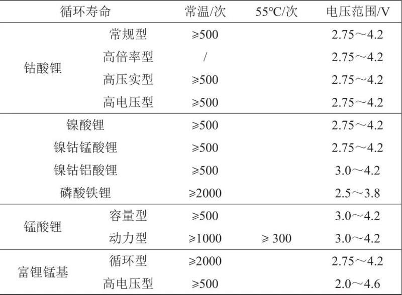 表14 正極材料標(biāo)準(zhǔn)中循環(huán)壽命要求