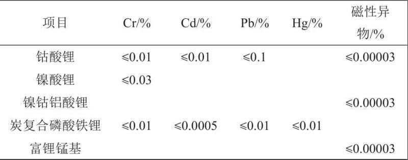 表10 正極材料標(biāo)準(zhǔn)中雜質(zhì)元素含量要求
