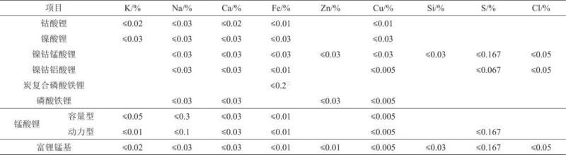 2.9 正極材料的雜質(zhì)元素含量
