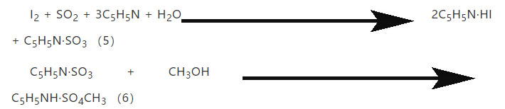 正是因?yàn)樗趾勘容^重要,需要用高靈敏度的卡爾費(fèi)休方法測(cè)試:采用I2、SO2、吡啶、無(wú)水CH3OH配制成試劑,與樣品中水反應(yīng),計(jì)算出樣品中水含量,其測(cè)試原理見式(5)和式(6)