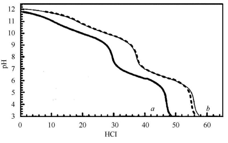 殘存堿測(cè)試通常采用酸堿電位滴定或人工滴定,將正極粉體分散到一定量純水中,過(guò)濾,量取一定體積的濾液用標(biāo)準(zhǔn)鹽酸溶液滴定。選取酚酞和甲基橙作指示劑,依次在pH≈8和pH≈4附近出現(xiàn)2個(gè)等當(dāng)點(diǎn),分別記錄所用標(biāo)準(zhǔn)鹽酸體積(圖7)。第1個(gè)等當(dāng)點(diǎn)發(fā)生如下反應(yīng)